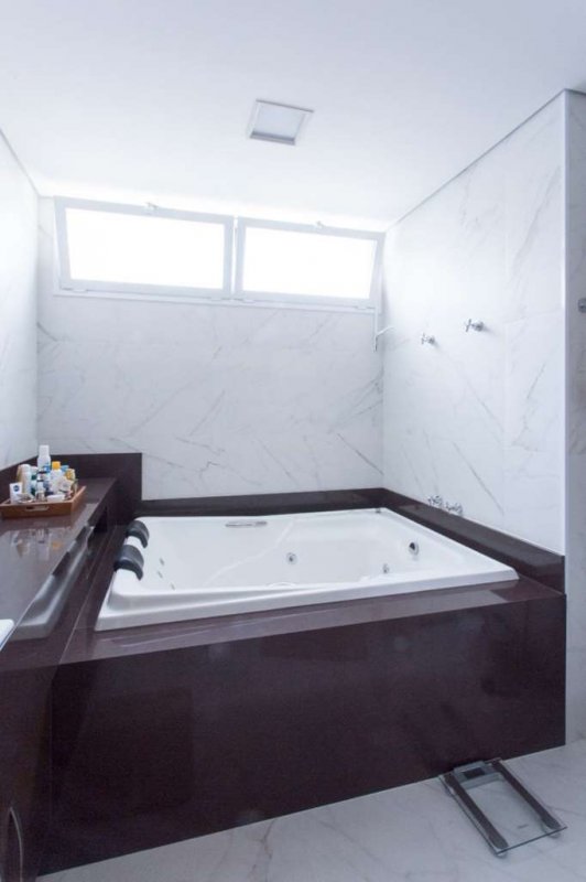 - Suíte master com cerca de 24m2, com armários, gaveteiros e prateleiras planejados,
