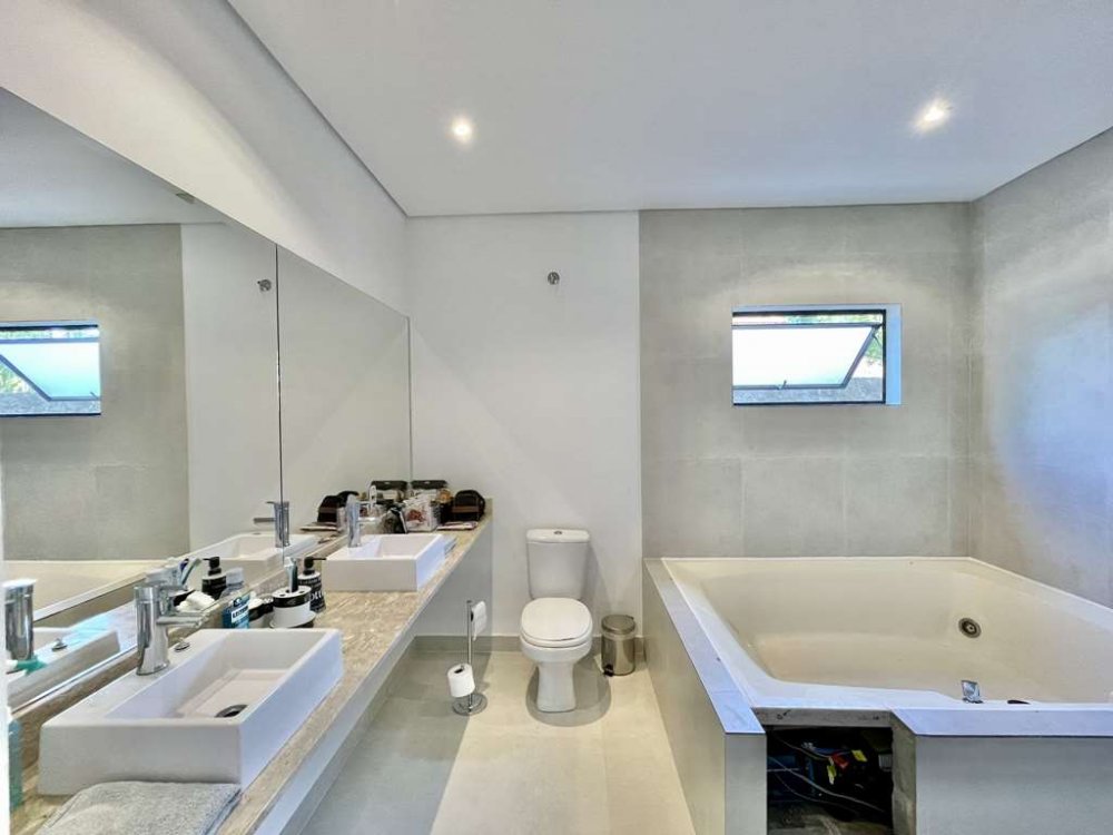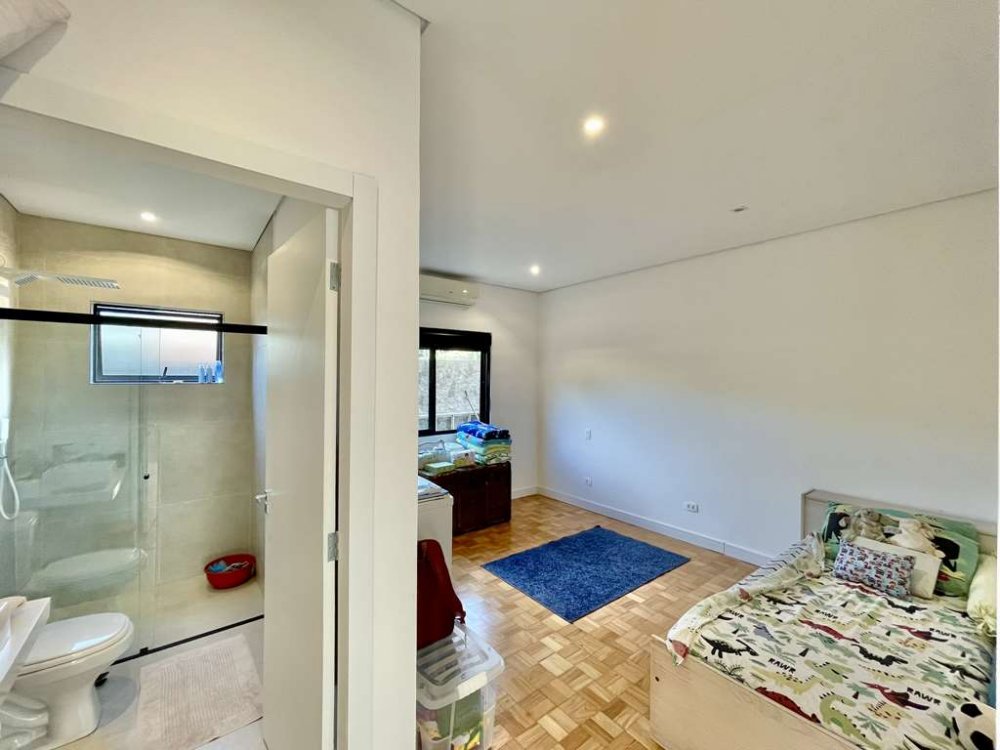 - Suítes Espaçosas: As três suítes são verdadeiros refúgios de conforto, integradas ao jardim e à piscina, com banheiros luxuosos e espaçosos.