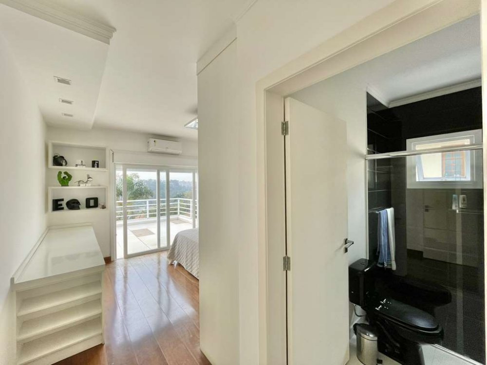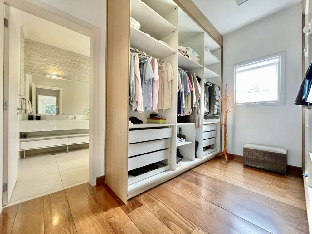 • 4 amplas suítes planejadas com armários, bancadas, estantes, persianas elétricas, terraços e vista. 3 suítes com ar condicionado. Sendo a master no térreo com grande closet.