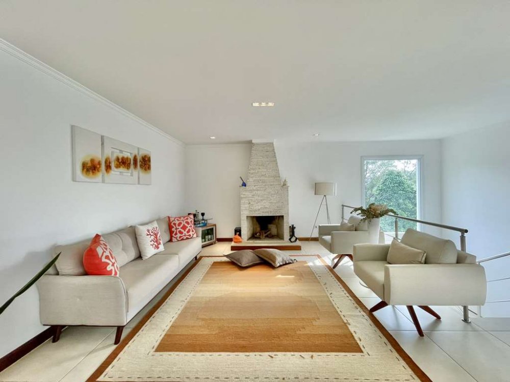 • Estar, lareira em canjiquinha, jantar e bar.