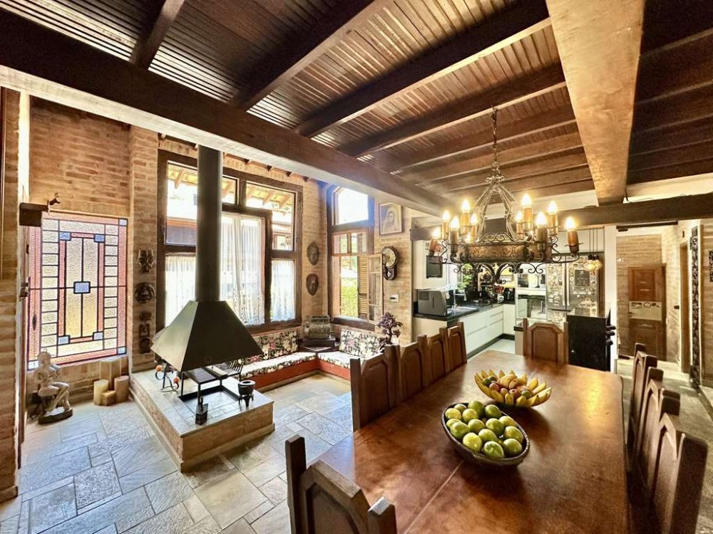 • Linda casa rústica integrada impecável, com tijolos aparentes e materiais de demolição.