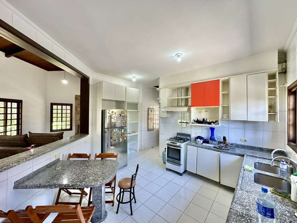 - Cozinha Americana Planejada: Com balcão, despensa e bancadas em granito.