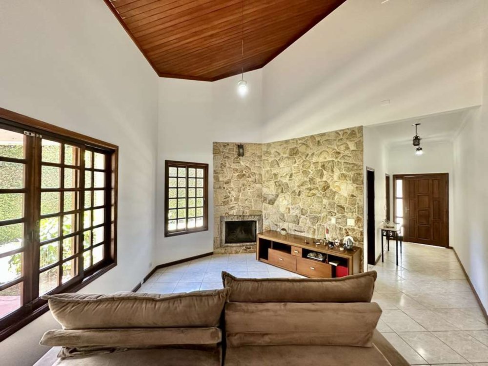 - Living para 4 Ambientes: Com pé direito alto, lareira e integração com a cozinha e varanda gourmet.