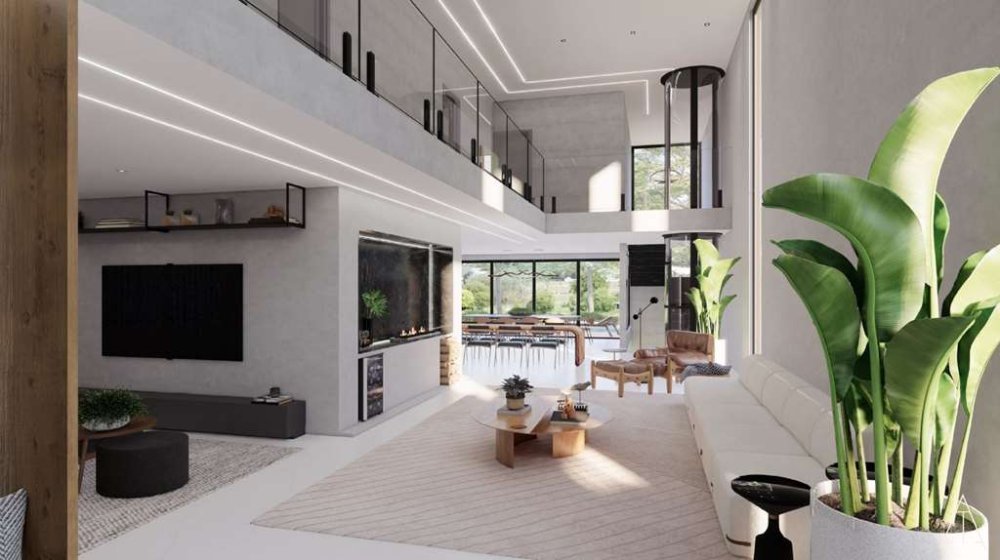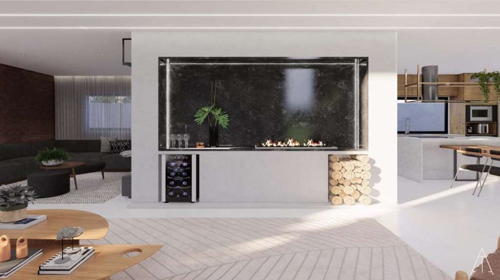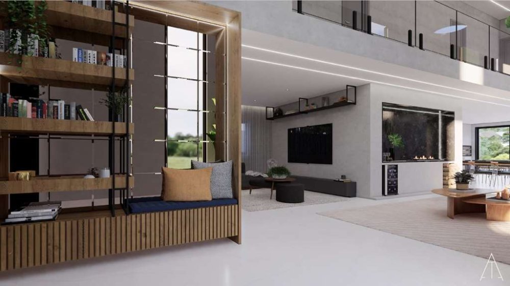 *Espaços Amplos e Integrados*: O living para 5 ambientes, com pé direito duplo, é perfeito para receber amigos e familiares. A lareira a gás traz um toque acolhedor aos momentos especiais.