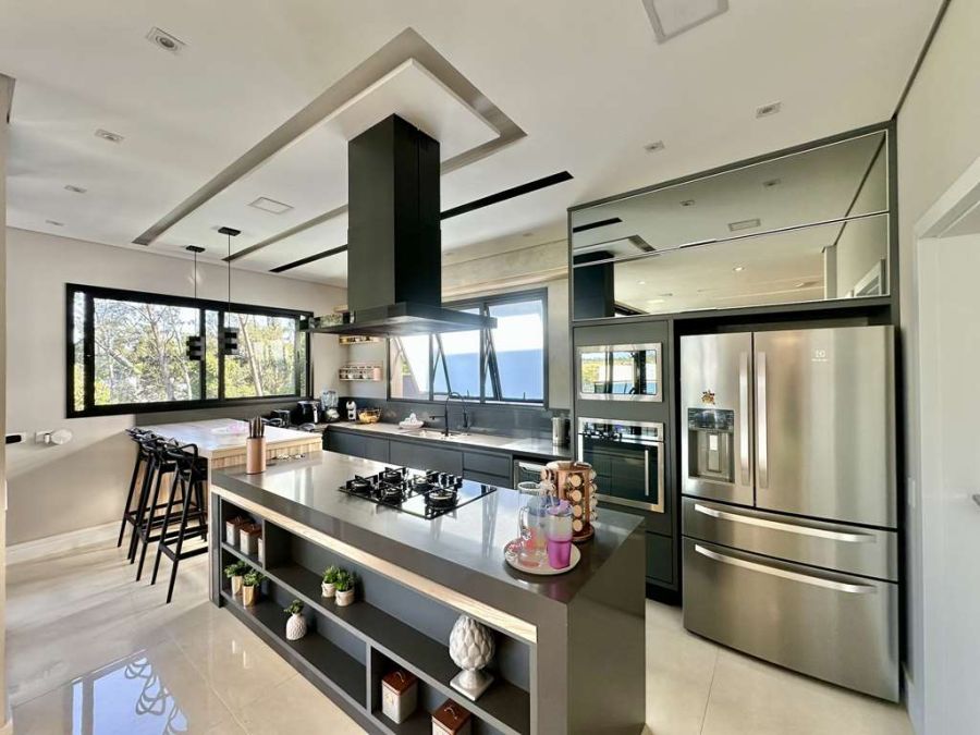 - **Cozinha Gourmet**: Cozinha planejada com ilha e espaço para refeições, perfeita para quem ama cozinhar e receber.