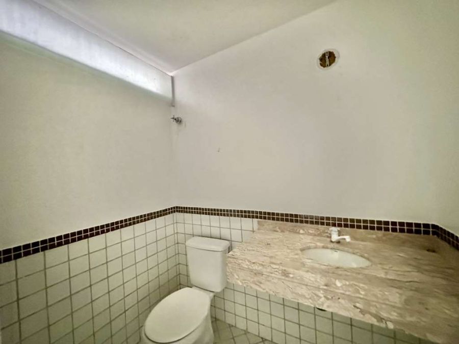- Hall de entrada com porta de correr, 1 recepção e lavabo com tampo em mármore.- *5 salas* e um grande salão preparado para até *12 posições de trabalho*.- Copa/cozinha com pia inox e vista para um quintal coberto.- Banheiro com tampo em travertino e espaço para box e chuveiro elétrico.