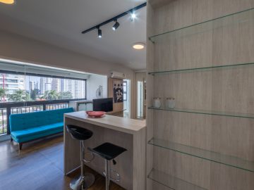 Studio à venda com 35 m2 de área útil, muito bem decorado, planejado para um excelente aproveitamento de espaço, com uma vaga de garagem, localizado na Zona Sul de São Paulo, no Bairro do Campo Belo, em condomínio moderno, com excelente infraestrutura.