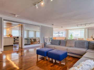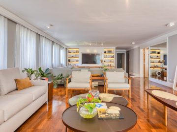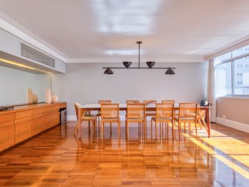 Um apartamento raro, reformado e com uma planta quadrada de puro conforto e sofisticação.