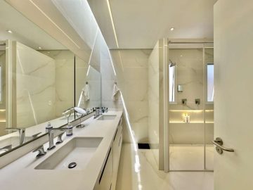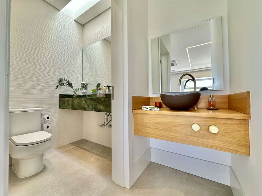 - **Acabamentos de Alto Padrão**: Pisos em porcelanato Portobello, granito nas escadas e madeira de Carvalho Americano, além de louças e metais Deca e Roca.