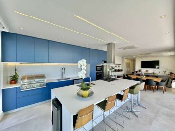 - **Área Gourmet Completa**: Perfeita para receber amigos e familiares, equipada com churrasqueira Evol, uma ilha com balcão e um fogão italiano Bertazoni de 6 bocas.