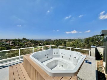 - **Piscina e Spa**: Desfrute de momentos de lazer em uma piscina aquecida, com hidro e uma área de spa com jacuzzi para 8 pessoas, ideal para relaxar.