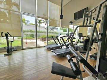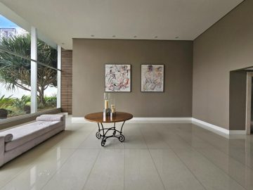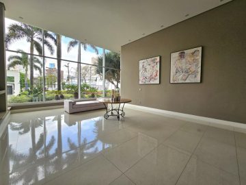 O prédio tem portaria 24h, vagas de visitantes, academia com pé-direito duplo, sauna, piscina com raia, salão de festas e um belo jardim frontal com recuo.