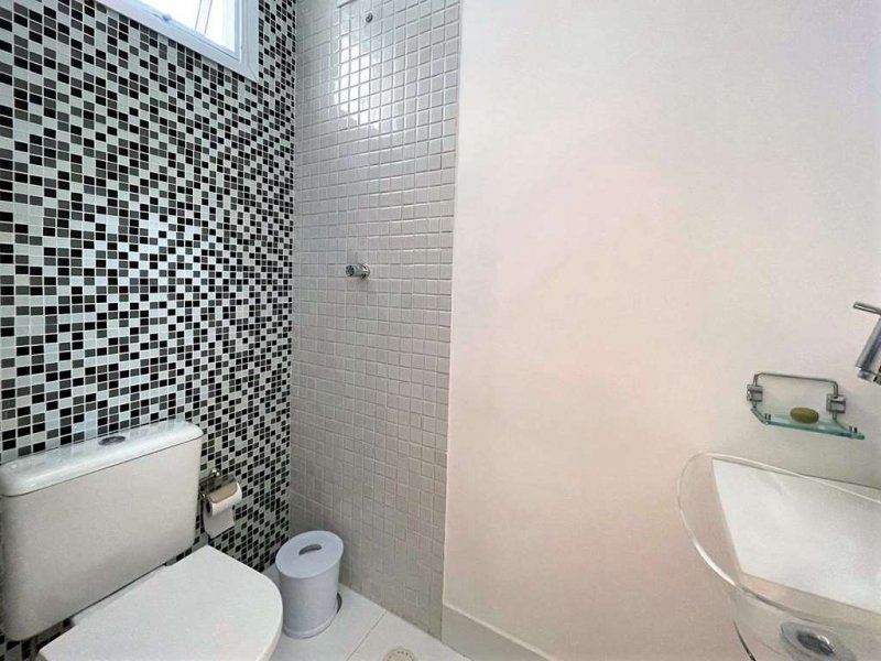 - Banheiros com tampos em mármore, espelho, gabinetes, box de vidro e nichos. Sendo a máster com 2 cubas e hidro dupla.